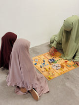 De khimaar en abaya zijn gemaakt van zachte, ademende jersey die licht aanvoelt en meebeweegt met elk stapje. De stof is speciaal gekozen om prettig te zitten op jonge huidjes.